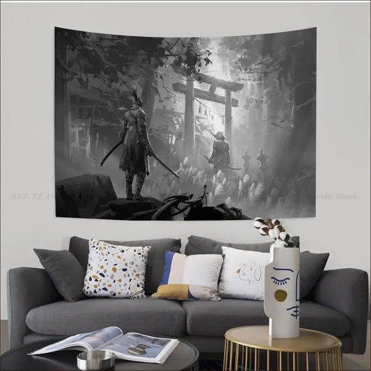 Japanese Flower Wrapping Black Cloth Furoshiki