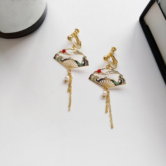 Japanese Fan Thin Tassel Earrings