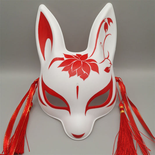 Japanese Half Face Hand-Painted Kitsune Mask