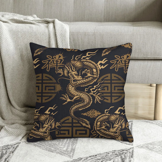 Japanese Golden Dragon Cushion Cover